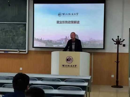 最后,周迪结合近期就业工作中出现的问题进行了强调,要求同学们要认真面对考公、求职就业规划,积极调整择业目标,主动出击多参加各类招聘会,在招聘过程中要提高防范求职陷阱和招聘诈骗的意识,在求职过程中做好安全防范。