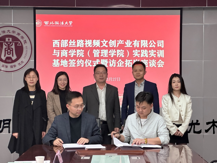 与西部丝路视频文创产业有限公司于诚意楼617举行教学实践实训基地签约授牌仪式。西部丝路视频文创产业有限公司执行董事廖琰、总经理郭春虤、董事助理管森,禁漫岛